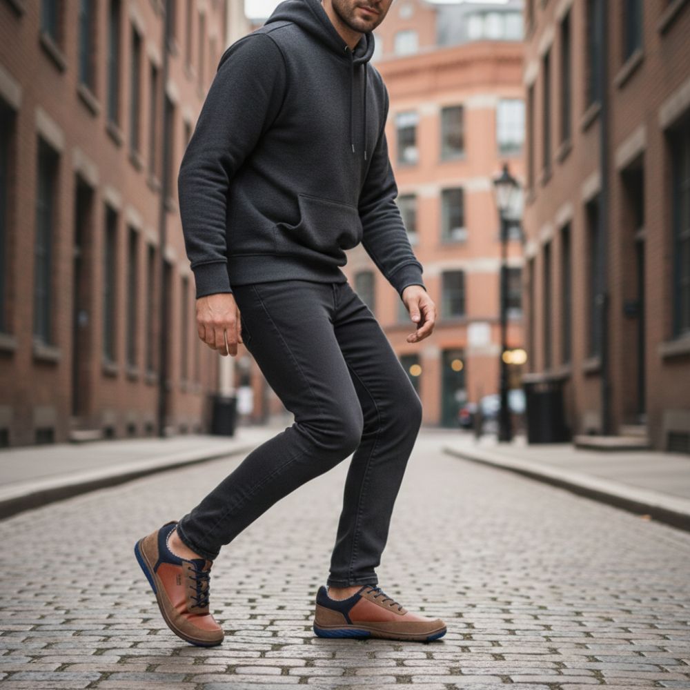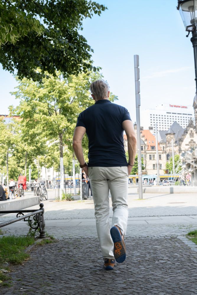 • Kautschuksohle mit Nullabsatz, dadurch Entlastung der Wirbelsäule und Schonung der Gelenke, unterstützt die natürliche Körperhaltung