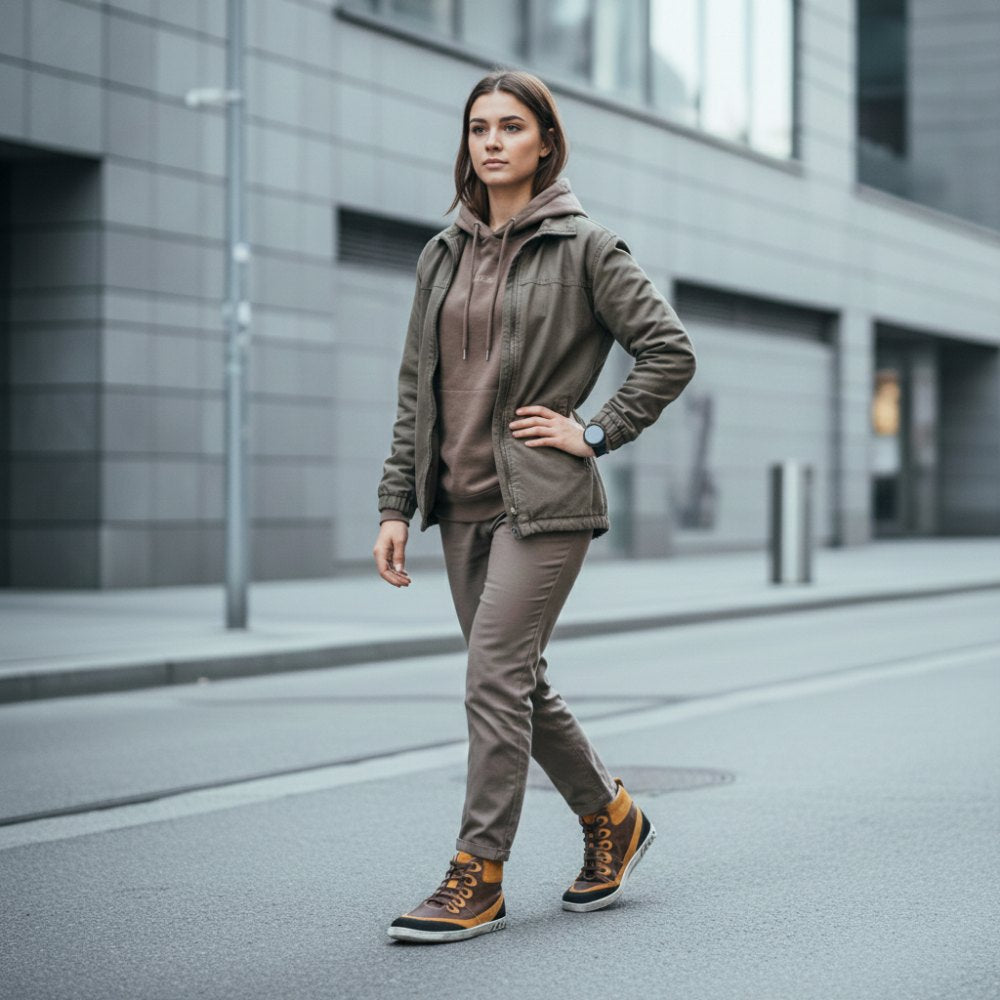 Alleen de beste materialen worden gebruikt. We combineerden donkerbruine Nappa -leer met lichte suede en bereikten dus een sportieve uitstraling. Er is ook robuust velours leer in de voorkant en op de hielen.