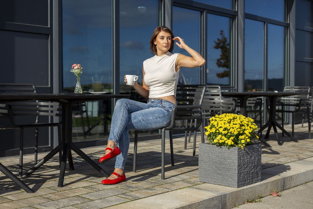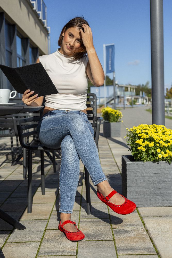 Ons Dieqo Red is de vrouwelijke ballerina voor dappere vrouwen die graag ieders aandacht trekken.