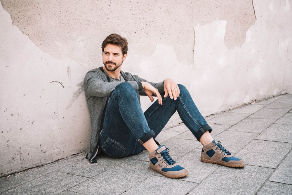 Met de prachtige blauwe toon in combinatie met lichtbruin, is deze op blote voeten schoen niet alleen te zien in de bergen, maar is hij ook uw comfortabele metgezel voor alle dagelijkse activiteiten.