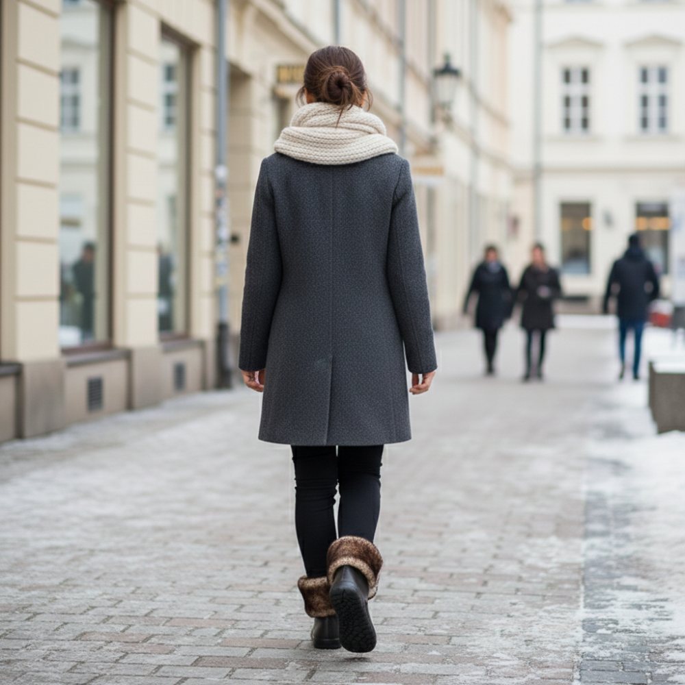 Het donkerbruine suede als een bovenste materiaal en de furimiteit als een feed, geef de laarzen op blote voeten een fijne en elegante uiterlijk. Met zijn flexibiliteit en geïntegreerde nulhiel dient de rubberen zool bij elke stap voor absoluut wandelcomfort en verlichting van de wervelkolom.