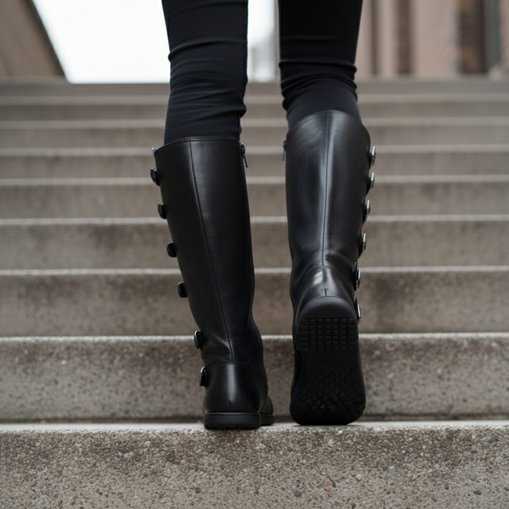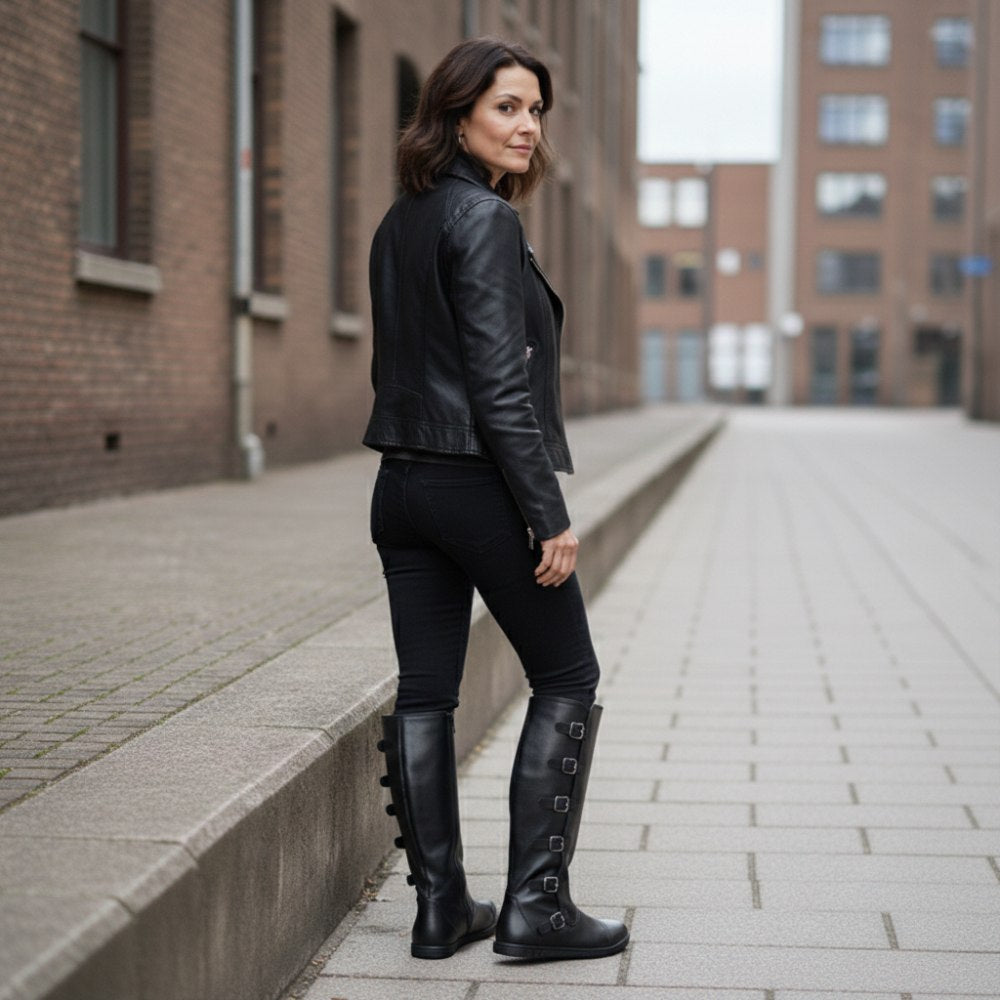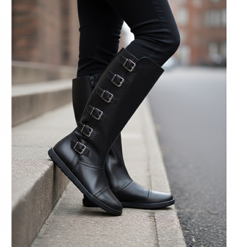 Met de teen dop en de gespen langs de hoge schacht ziet onze Pauliq er dik uit, net zoals een rocker -laars moet zijn. Toch heb je het comfort van een in hem ZAQQ Barefoot -schoenen. De absoluut platte zool is zeer flexibel en geeft je daarom het ultieme op blote voeten gevoel in een dikke laars.