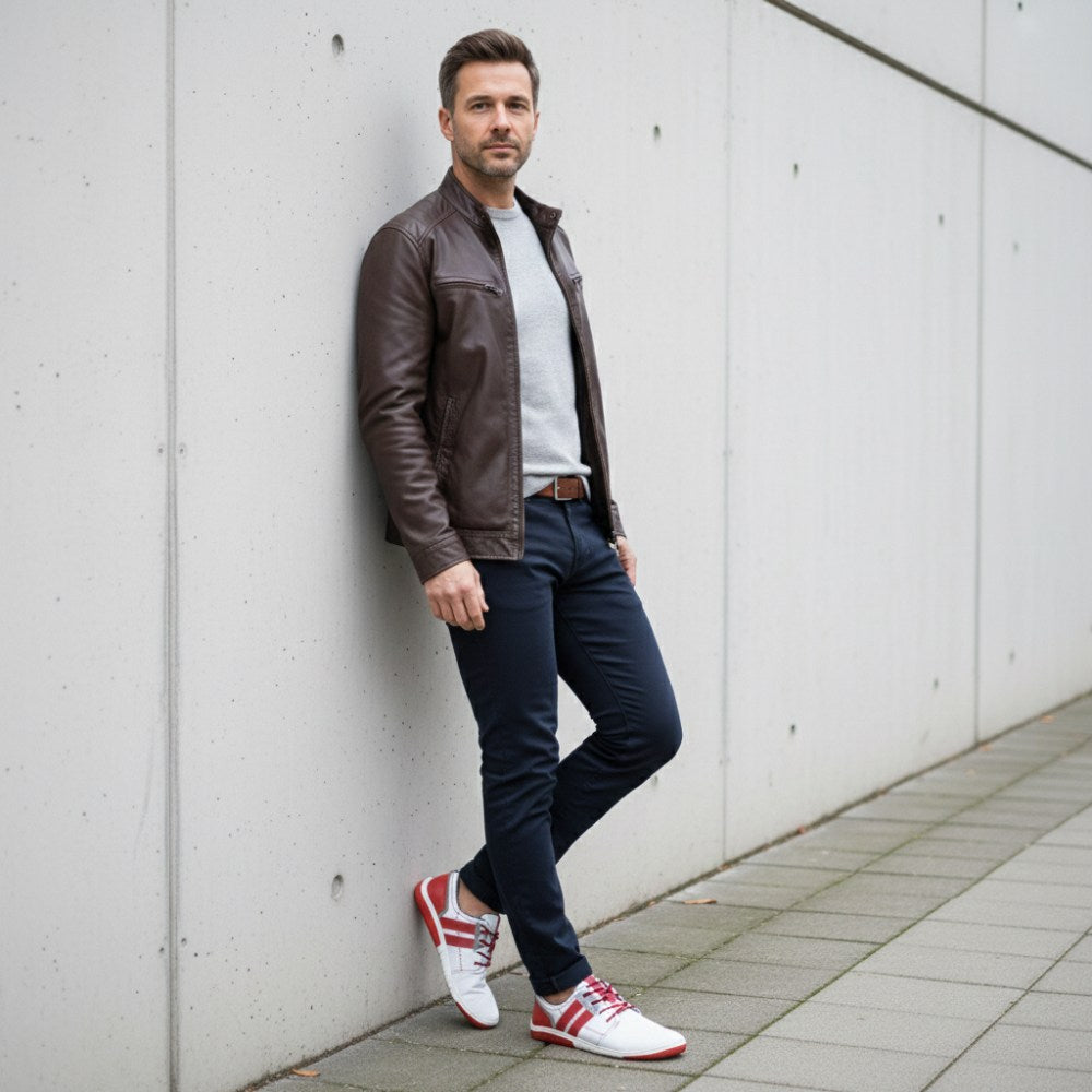 Met zijn succesvolle kleurenspel gemaakt van wit en rood, ziet de sneaker er fris uit en past perfect in de warmere helft van het jaar. Voor Qanberra gebruiken we fijn geperforeerd, wit Nappa -leer, dat zorgt voor een hoge ademhalingsactiviteit. Dus je voeten zullen in de sneaker voelen, zelfs op de heetste dagen van het jaar zonder te gloeien.