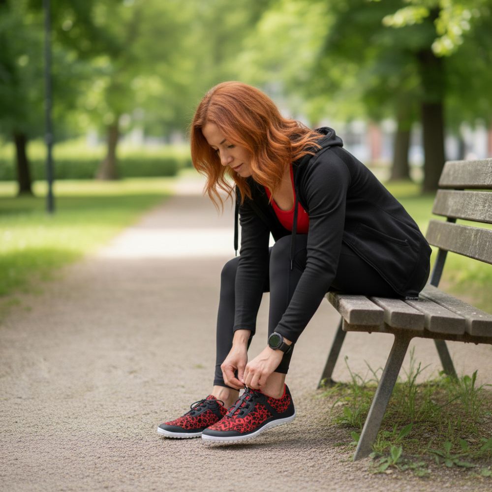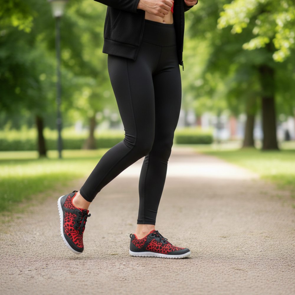 Qasey Red is je veganistische blote voetschoen, die gegarandeerd je nieuwe dagelijkse en sportvriend is en je zeker naar elk doel zal brengen.