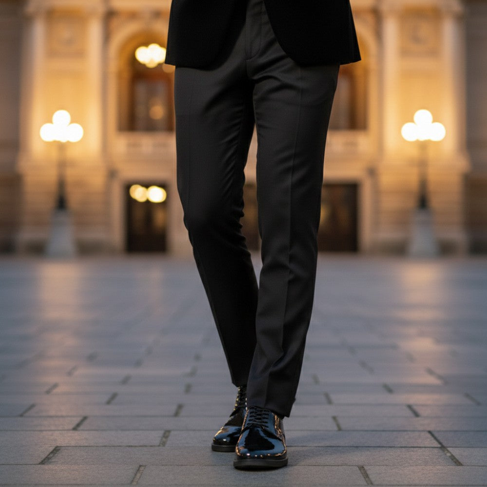In de wereld van elegante herenschoenen voldoet ons smoqing zwart gemaakt van zwart verfleer niet alleen aan de hoogste esthetische vereisten, maar combineert ook het comfort van blote voetschoenen met tijdloze elegantie. Deze veeleisende Clipper is meer dan alleen een modeverklaring - het is een fusie van stijl en gemak.