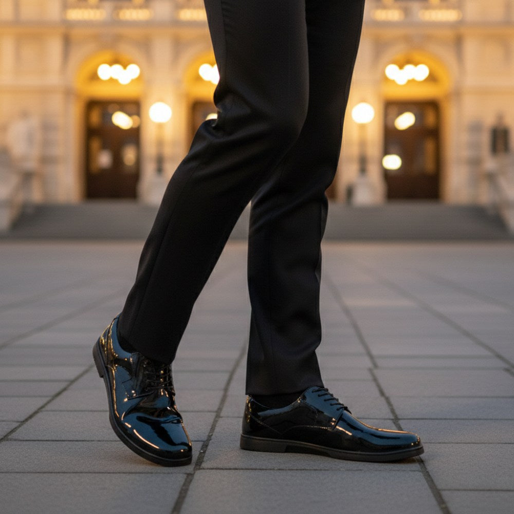 Het glanzende patentleer geeft deze Derby -schoen een onmiskenbare verfijning die het voor verschillende gelegenheden een veelzijdige metgezel maakt. Of het nu formele zakelijke bijeenkomsten, sociale evenementen of elegante avondevenementen is - deze schoen heeft altijd een duidelijke verklaring ingesteld.