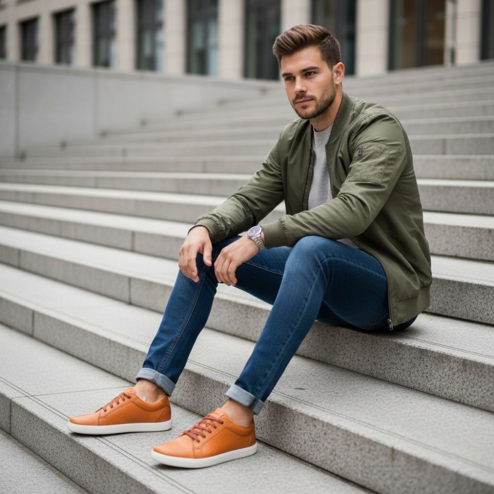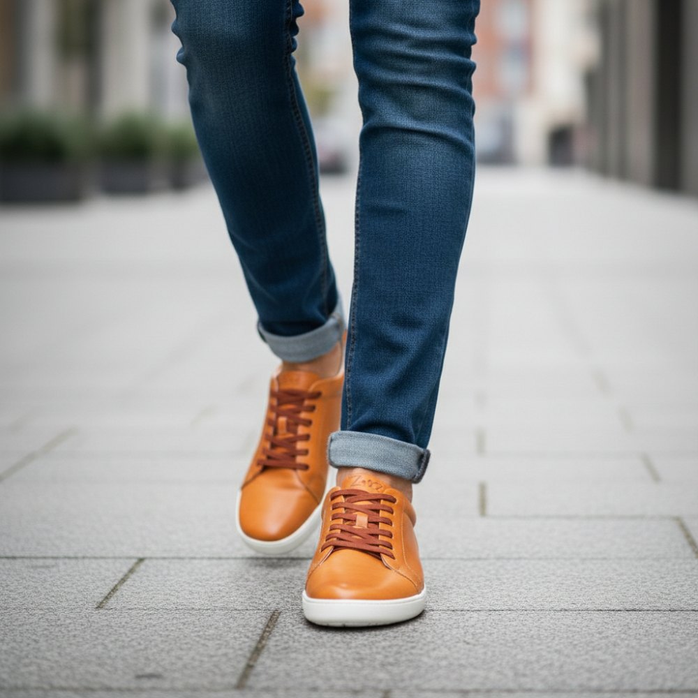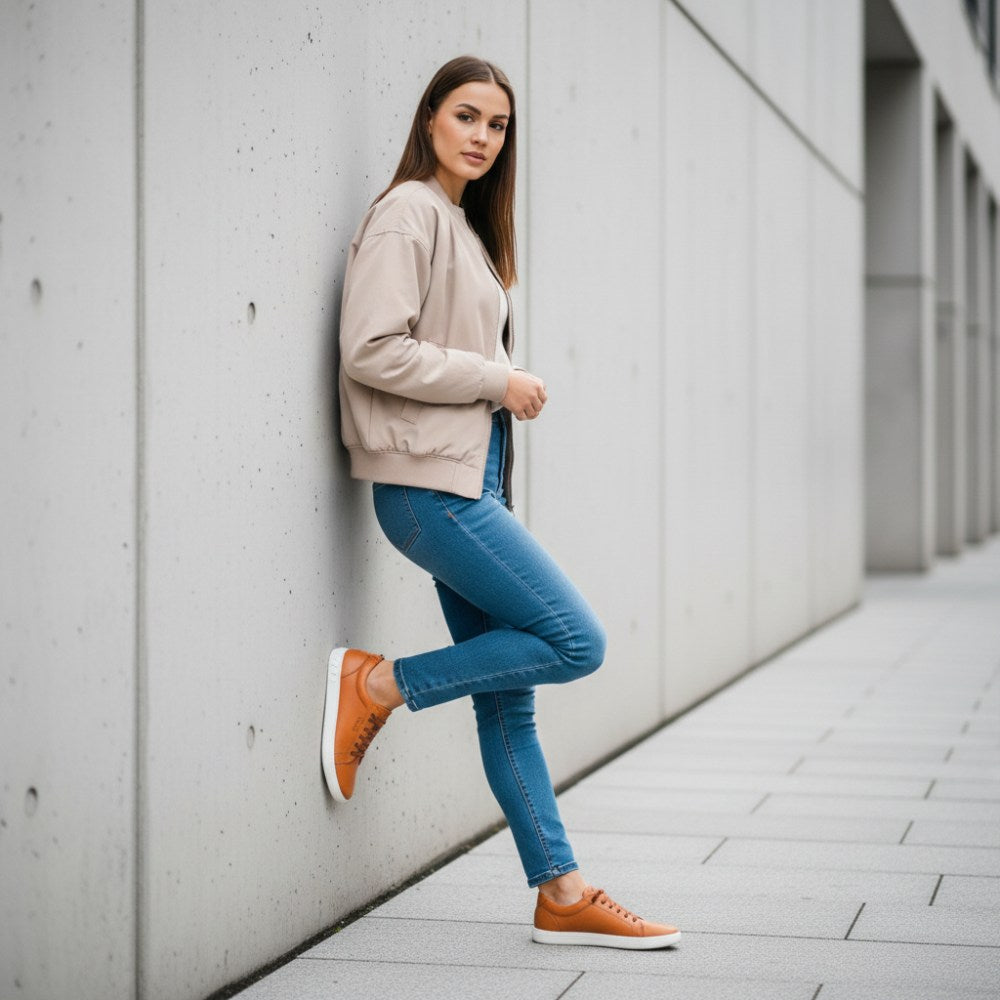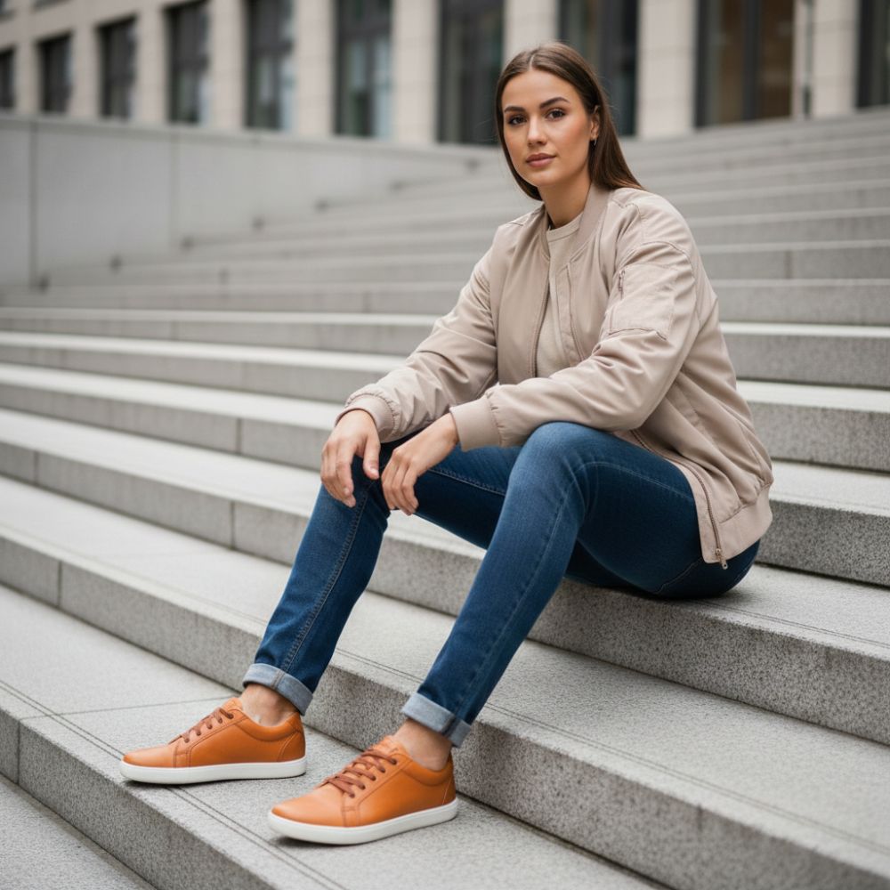 De op blote voeten schoen op een warme bruine oranje toon is een echte in de gaten van kracht. STIQ is voorzien van extra -brede veters die perfect passen bij het bovenste materiaal en geven de sneaker een groot effect.