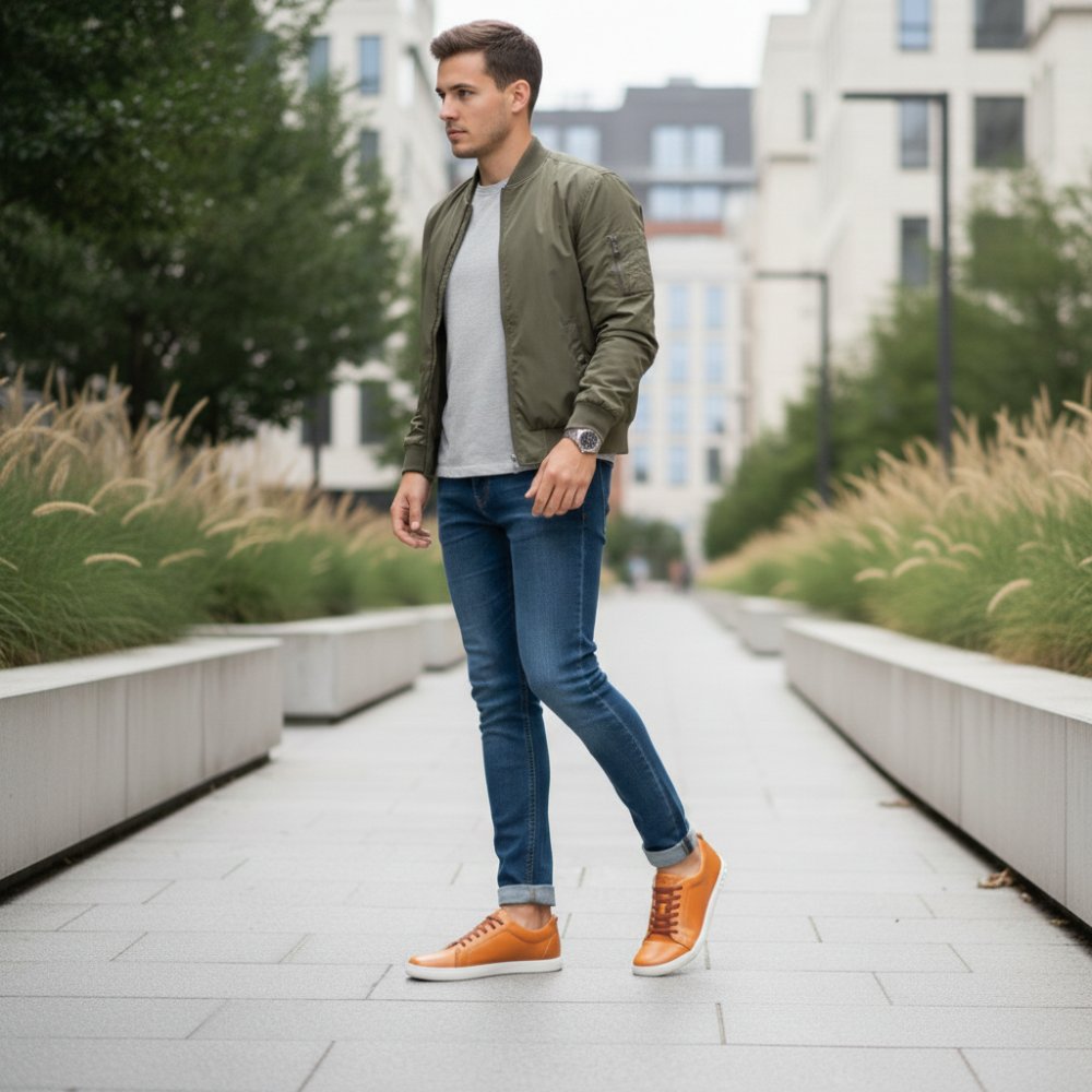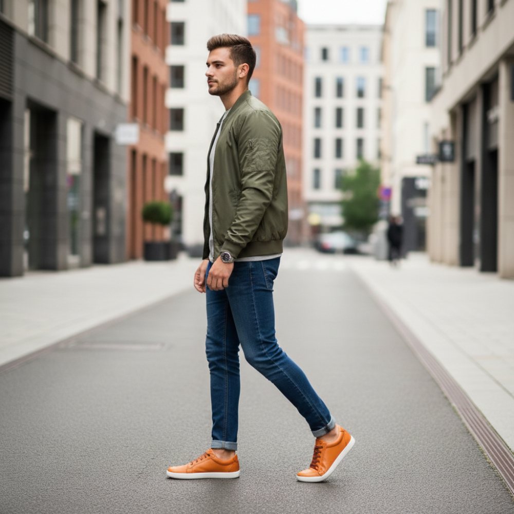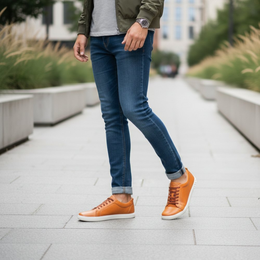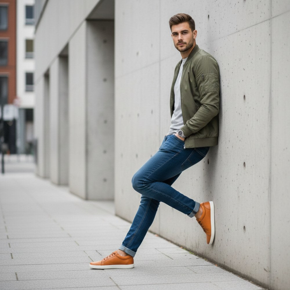 De op blote voeten schoen op een warme bruine oranje toon is een echte in de gaten van kracht. STIQ is voorzien van extra -brede veters die perfect passen bij het bovenste materiaal en geven de sneaker een groot effect.